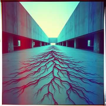 Concrete cracking, roots fighting through,